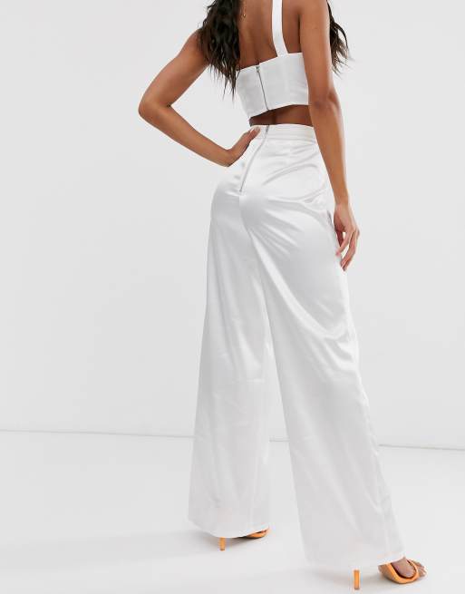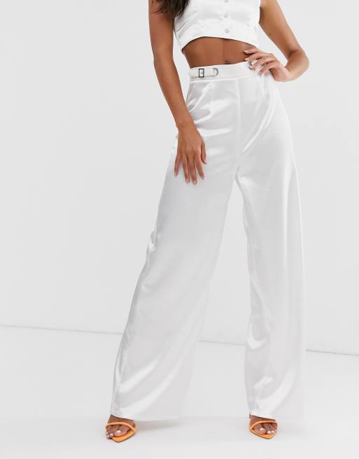Hvide Bukser Med Vide Ben Og Hardware Detalje I Satin Fra Saint Genies Asos