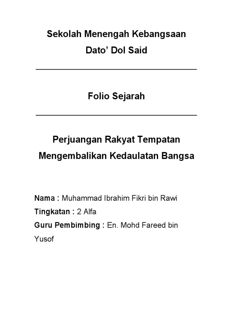 Contoh Folio Sejarah Pt3 2022 Bagi Pelajar Tingkatan 3